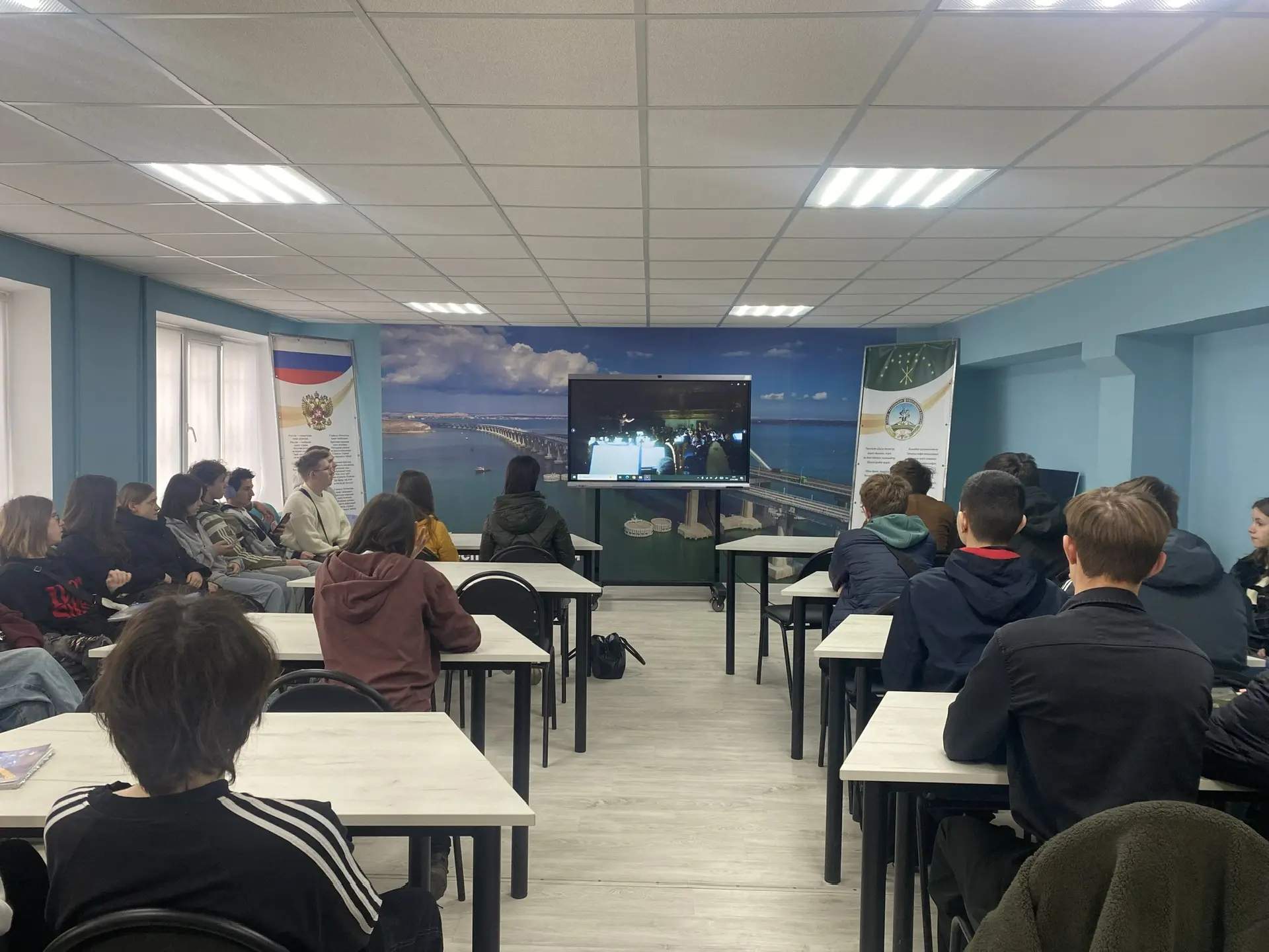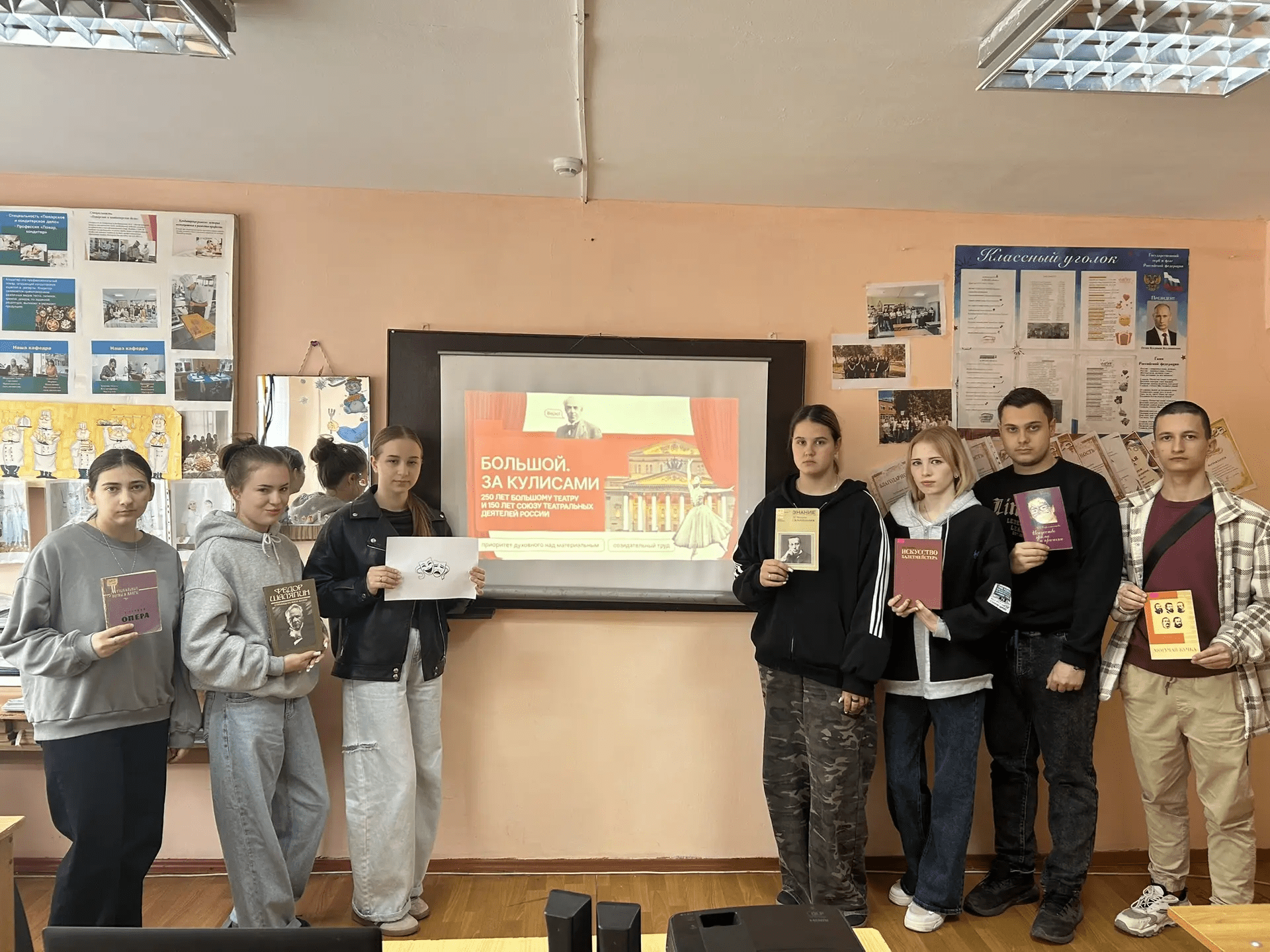 После линейки студенты отправились на «Разговор о важном». Тема этого занятия: «Большой. За кулисами. 250 лет Большому театру и 150 лет Союзу театральных деятелей России». Разговор о культуре, искусстве и людях, которые создают те волшебные моменты на сцене.