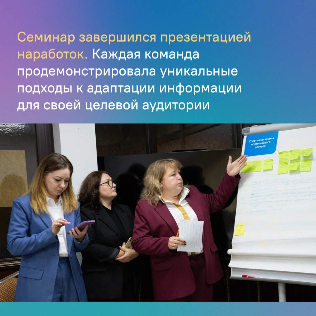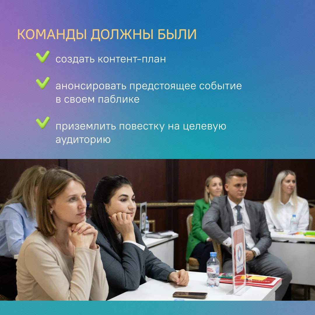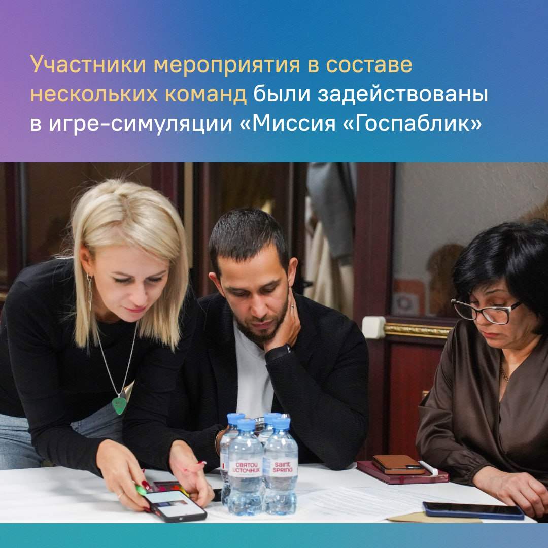 Участники разделились на команды и приняли участие в игре-симуляции «Миссия «Госпаблик», в которой нужно было разработать структуру для своего госпаблика, составить недельный контент-план и адаптировать информацию о предстоящем культурном мероприятии для своей целевой аудитории.