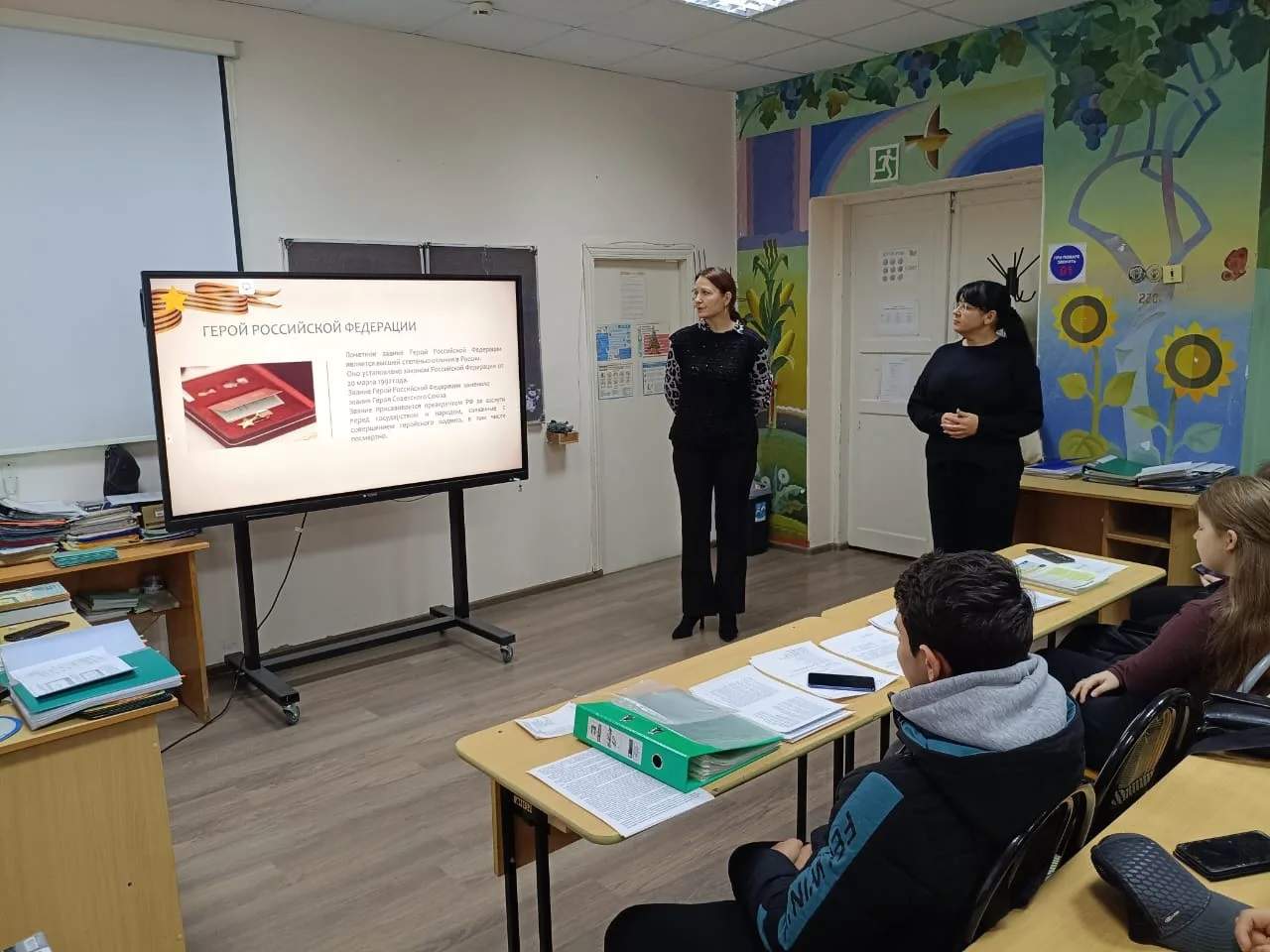 08 декабря 2025 года в Майкопском политехническом техникуме состоялся ряд мероприятий, приуроченных ко Дню Героев Отечества. Преподаватели гуманитарного цикла Харламова О.А. и Близнец Н.В. провели Патриотический час «Героями славится Россия».