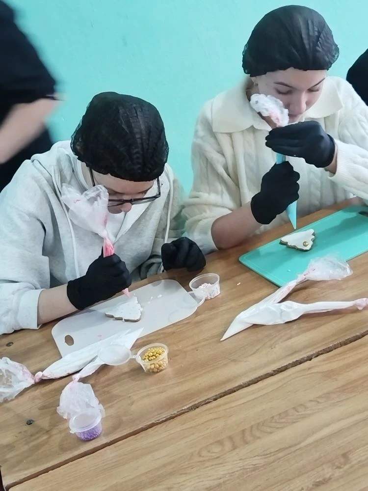 А самым захватывающим моментом, без сомнения, стала роспись и украшение имбирных пряников. Это настоящее поле для фантазии! Используя королевскую глазурь Айсинг, посыпки и кондитерские инструменты, школьники превращали простые пряники в настоящие произведения искусства. Каждый пряник получился уникальным, отражая индивидуальность своего создателя.