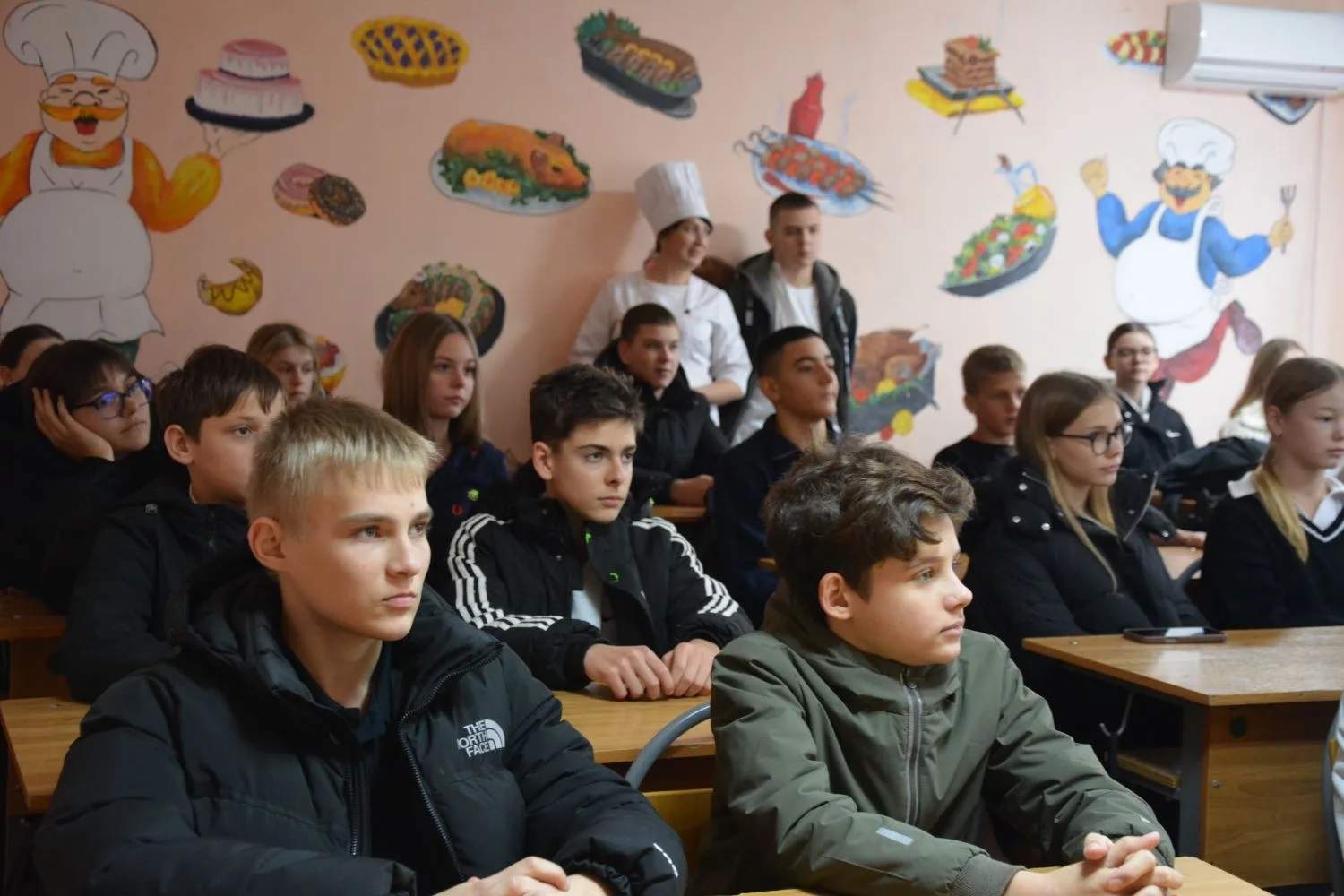 В рамках профориентированного проекта “Билет в будущее”, здесь собрались учащиеся МБОУ СШ №23 имени А.П. Антонова, чтобы познакомиться с увлекательным миром поварского и кондитерского дела.