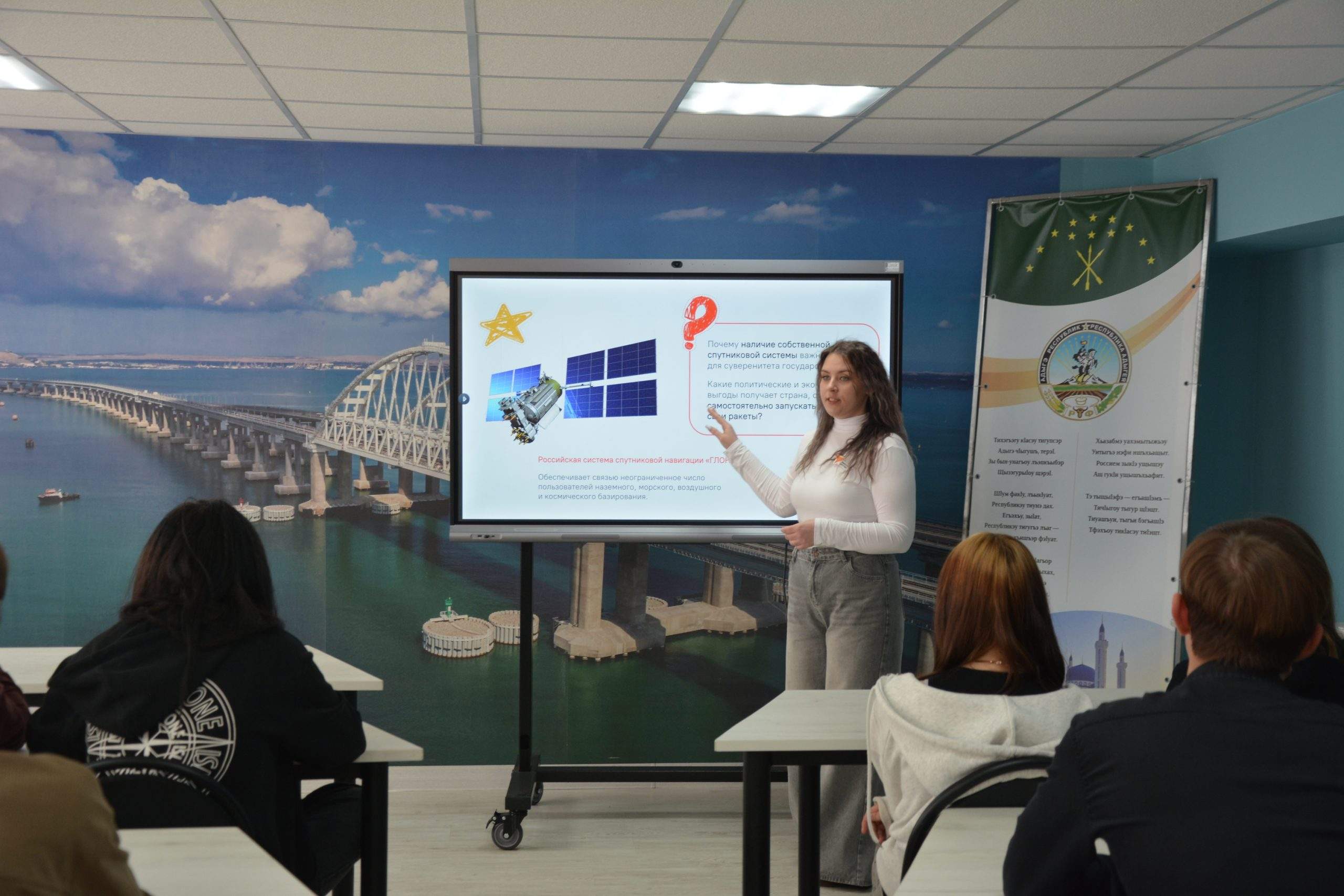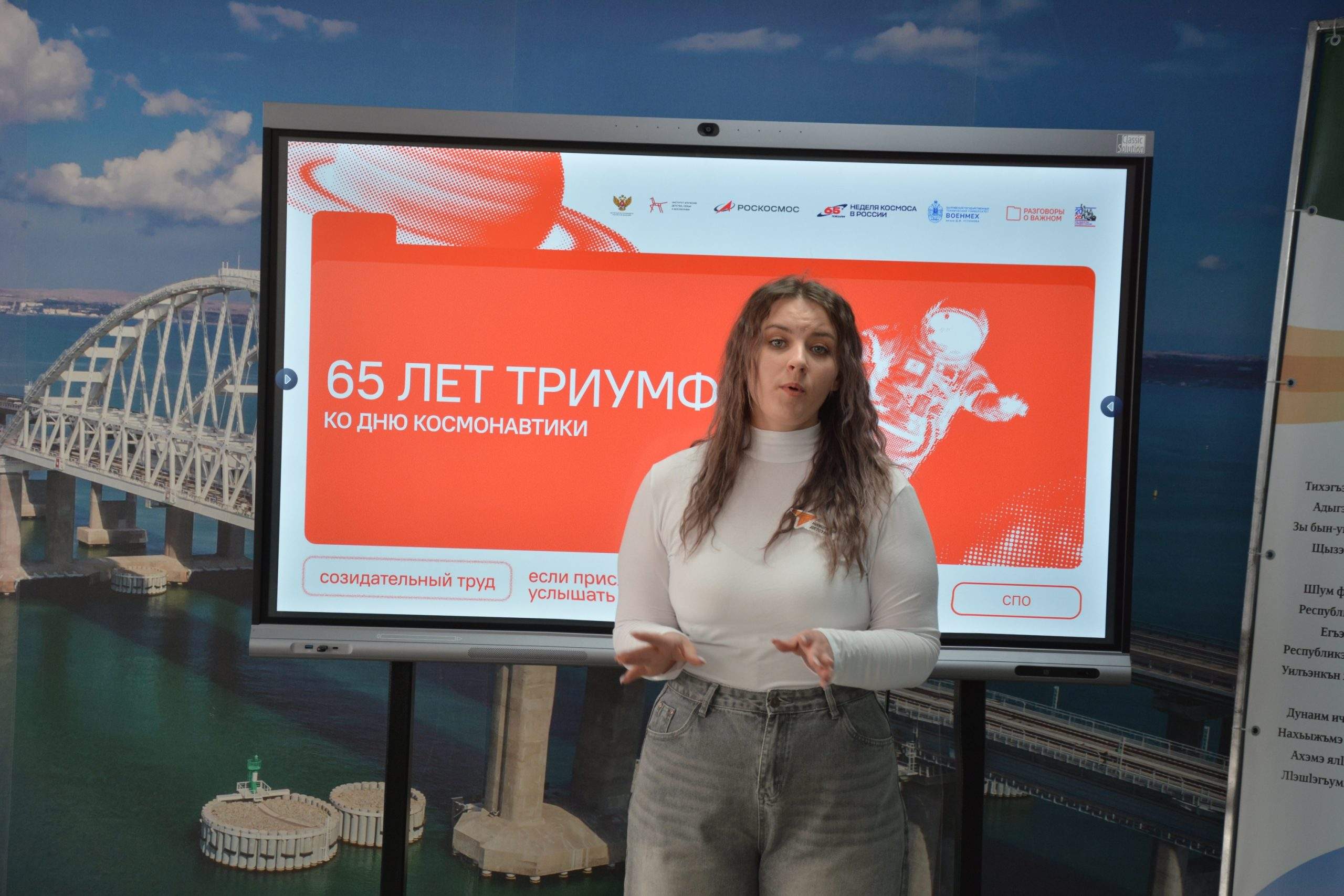 После линейки по традиции у нас прошли Разговоры о Важном! На тему: «65 лет триумфа. Ко Дню космонавтики»