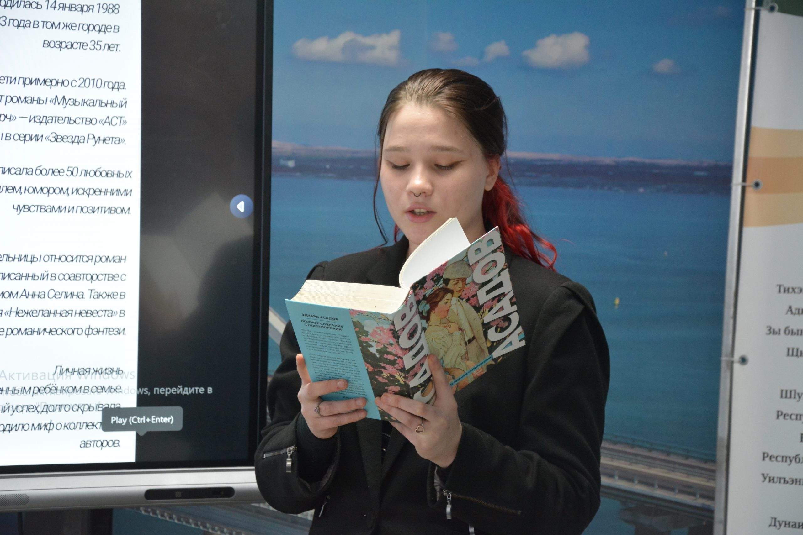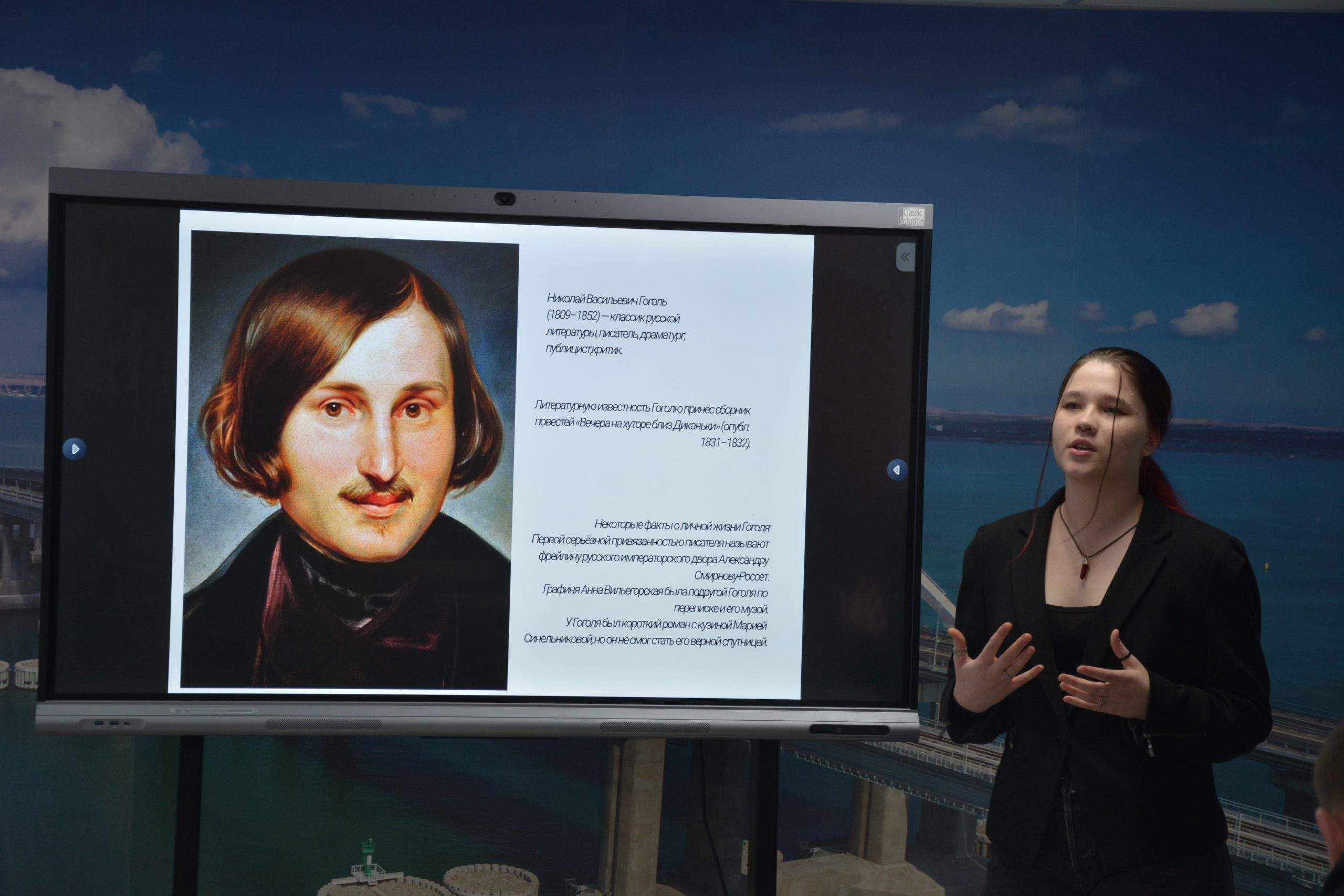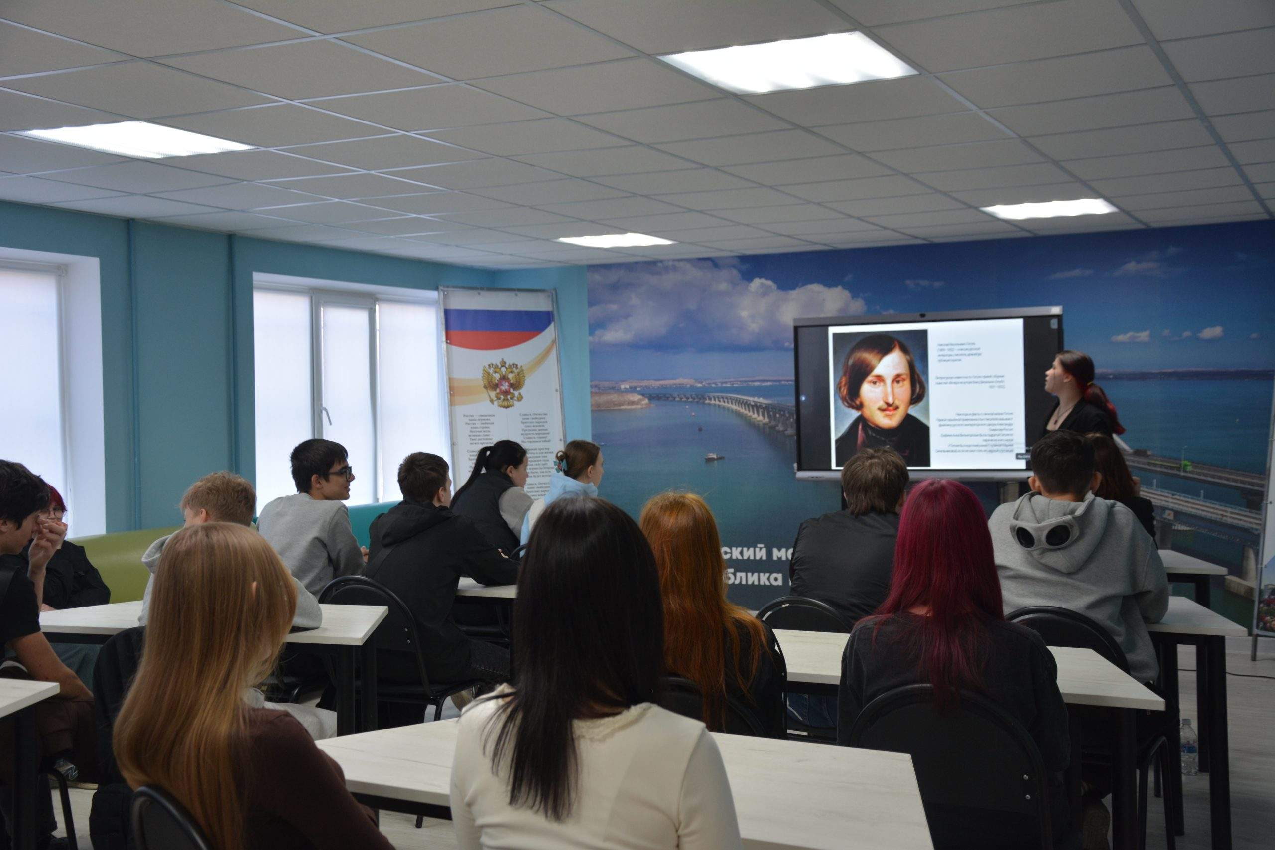 Советник директора Агеева Валерия и преподаватель литературы Мавритопулиди А. В. На котором выступила студентка 4 курса, группы 67 П — Улакова Елизавета со своим докладом «Классика на все времена.»