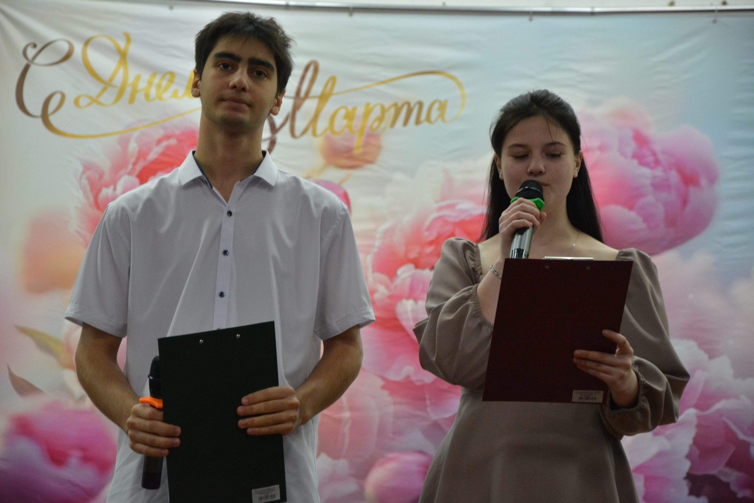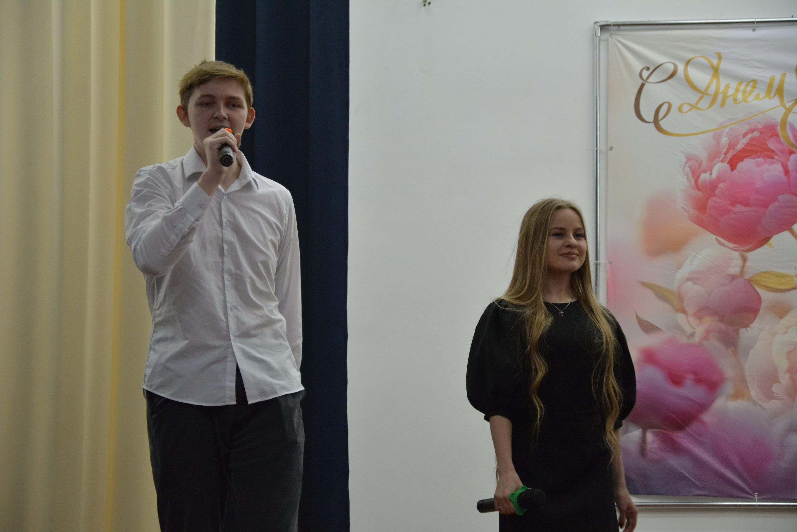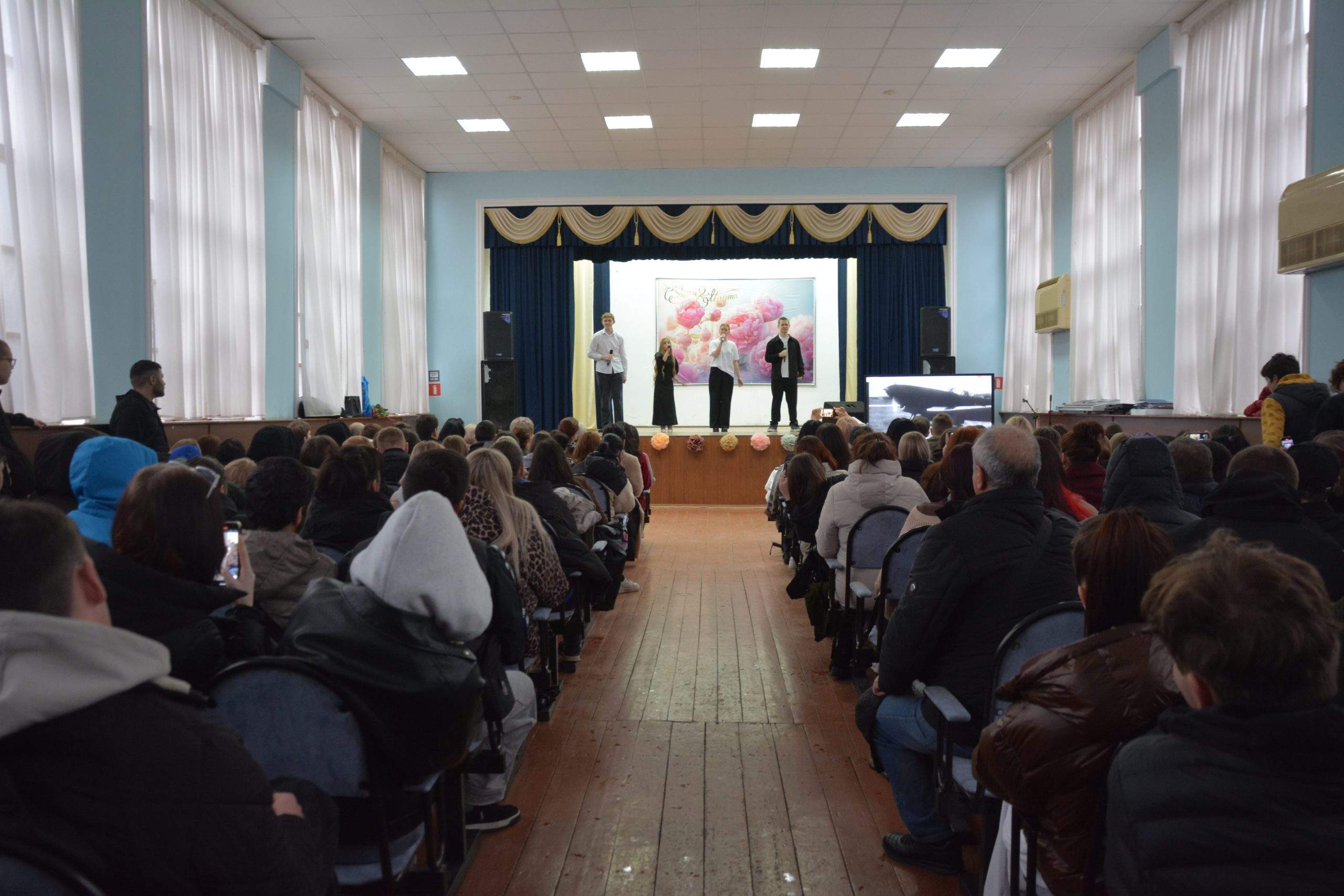 Когда на сцену вышли трое студентов, праздник стал нежным. Стихи о матерях, трогательный видеоролик «Притча о матери», танцы и песни — всё это было посвящено нашим прекрасным девушкам, женщинам, педагогам.