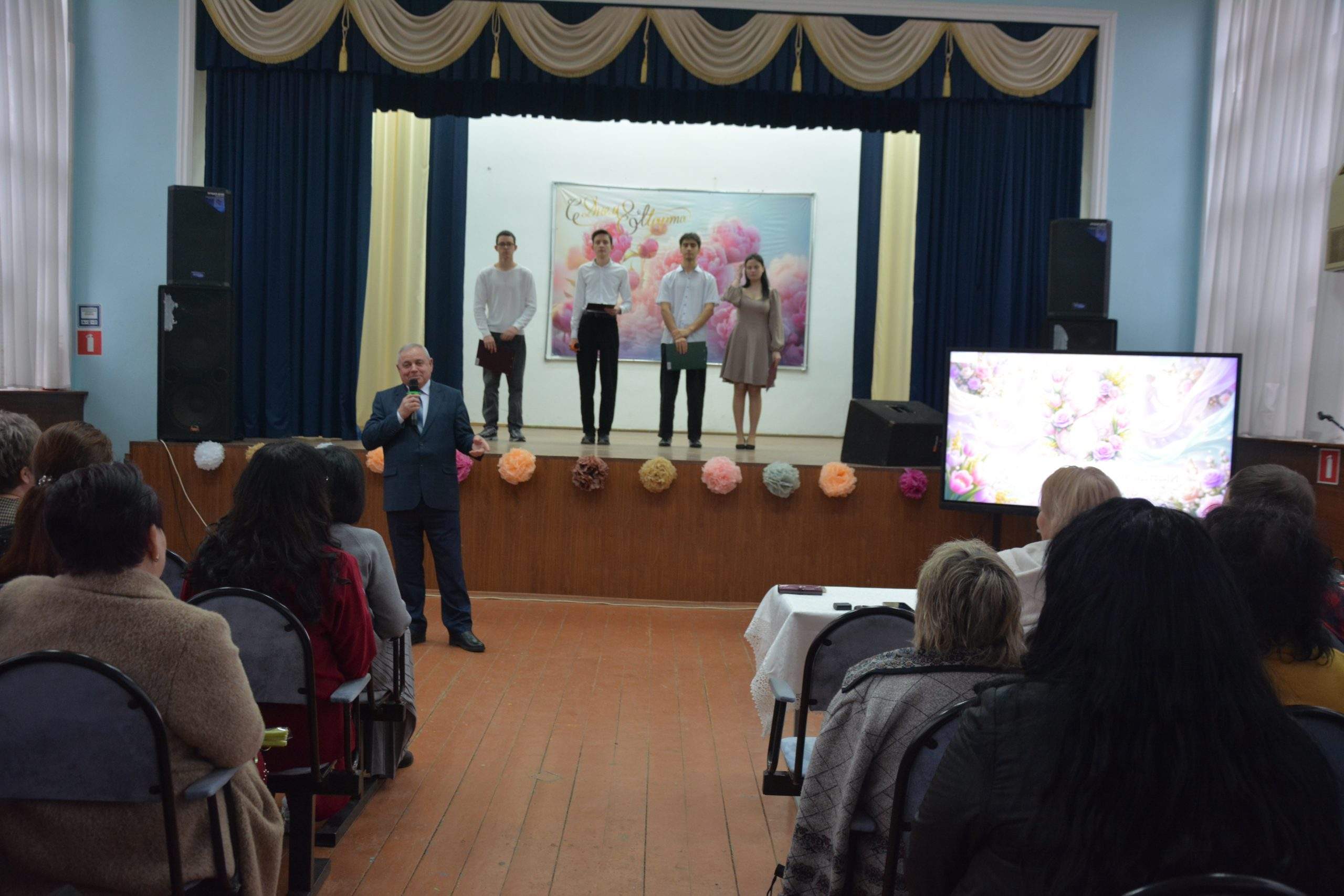 Директор техникума Вячеслав Хазретович Делок поздравил всех женщин, а тёплые слова прозвучали в адрес Ирины Евгеньевны Ермолаевой — человека, который всегда был не только профессионалом, но и настоящим другом коллектива. В её честь прозвучало стихотворение Ирины Самариной «Ты — женщина».
