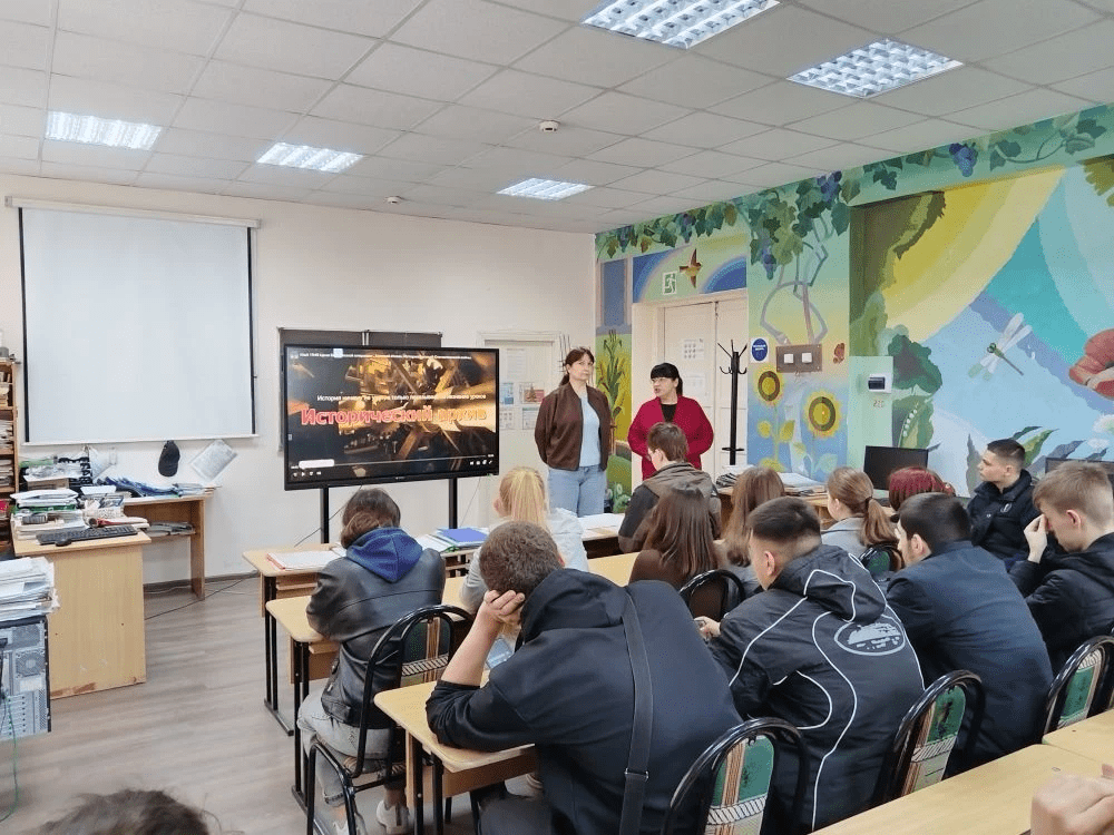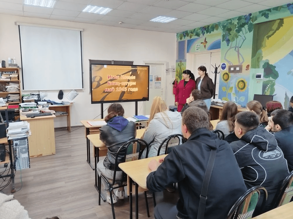 27 апреля для студентов групп 3 ПКД и 7 ЭРСТ преподаватели Н. В. Близнец и О. А. Харламова провели классный час, посвящённый решающим дням Великой Отечественной войны — «Военные операции 1945: апрель — май».