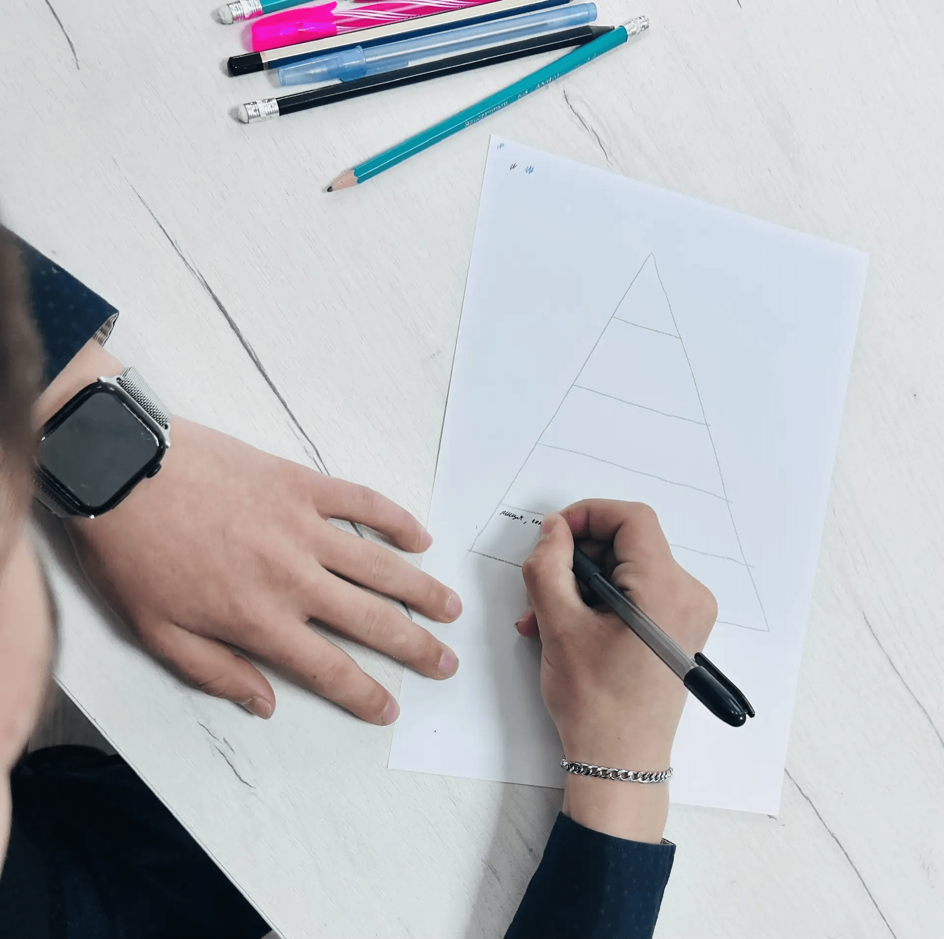 – Пирамида потребностей Маслоу — от базовых физиологических нужд до самореализации. Студенты с интересом примеряли эту схему на себя и свою жизнь.