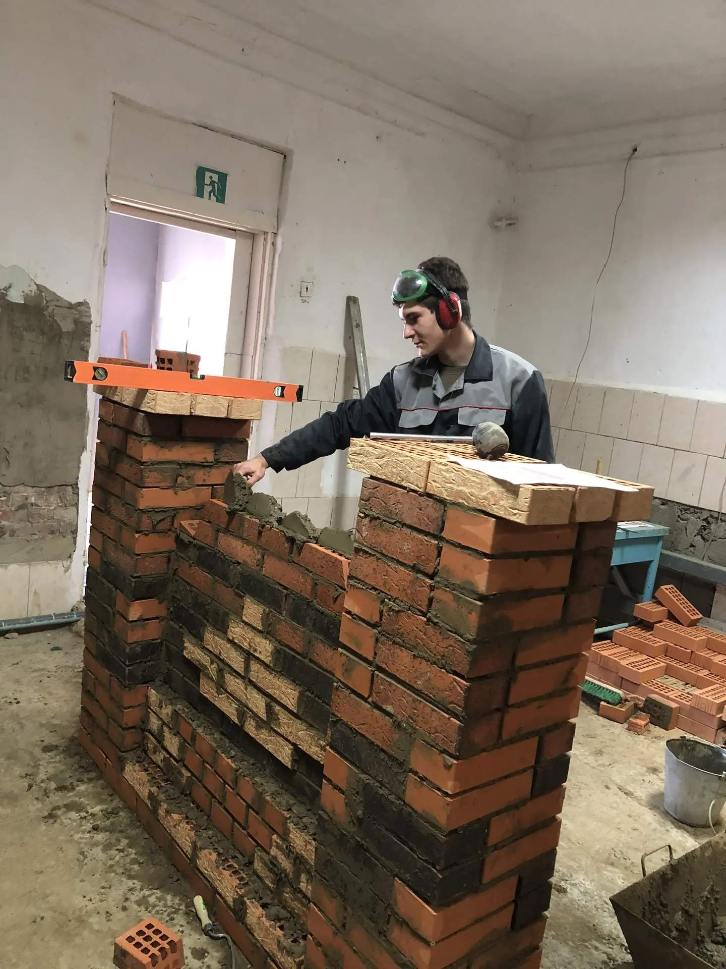 Участники выполняют кладку столбов заданного сечения, контролируя каждый миллиметр вертикали и горизонтали. Расшивка швов — строго по чертежу. Рубка, резка, очистка кирпича… Здесь нет мелочей. Здесь всё — качество.
