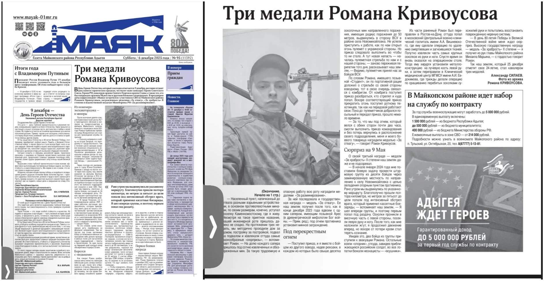 Романа мы можем с полной уверенностью назвать героем нашего времени, ведь он награжден медалями ” За отвагу”, ” За храбрость” 2 степени и ведомственной медалью Минобороны РФ ” За разминирование”.
